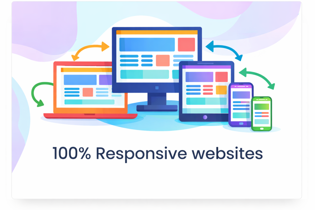 Our responsive designs help your business reach more users, improve engagement, and increase conversions. With fast loading speed, clean UI, and modern multi-color design, your website stays attractive, functional, and future-ready across all devices.
